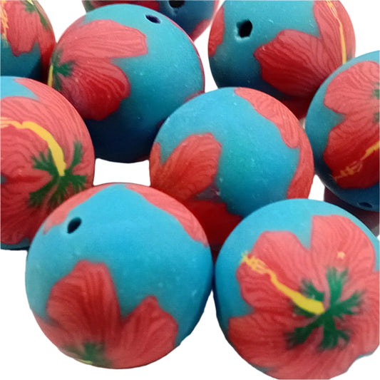 18mm Blue & Red Floral Handmade Polymer Clay Beads