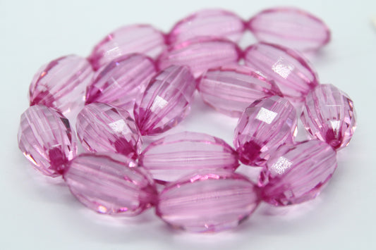20mm Oval Dark Pink Faceted Acrylic Beads