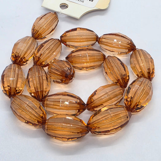 20mm Oval Dark Orange Faceted Acrylic Beads