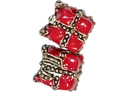 10mm Square Red & Floral Handmade Polymer Clay Beads