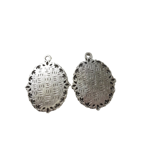 2 pc Silver Snowflake Shaped Cabochon Pendant