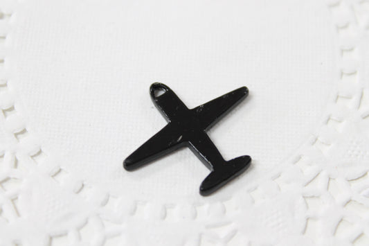 Black Enamel Air Plane Charm