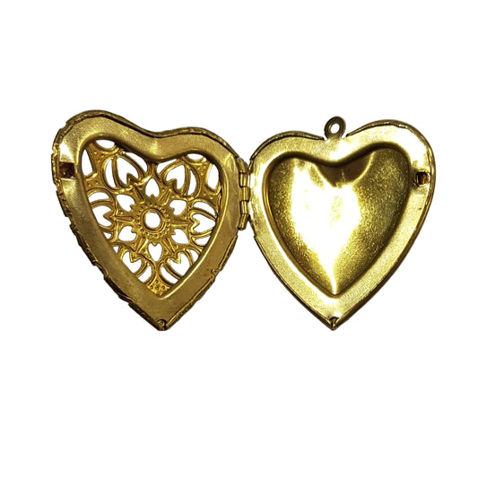 Bronze Heart Shaped Drop Charm Pendant With Stripes & Flowers