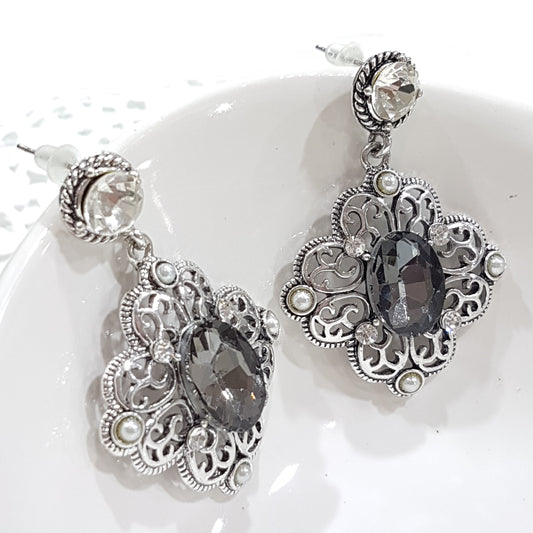 Grey Diamante Rhinestone Earrings