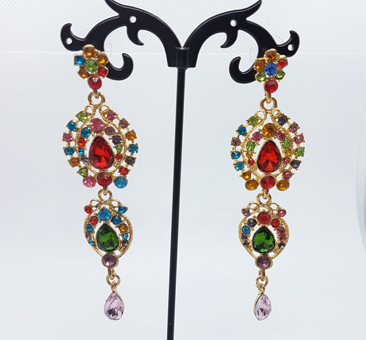 Multicolour Long Rhinestone Earrings