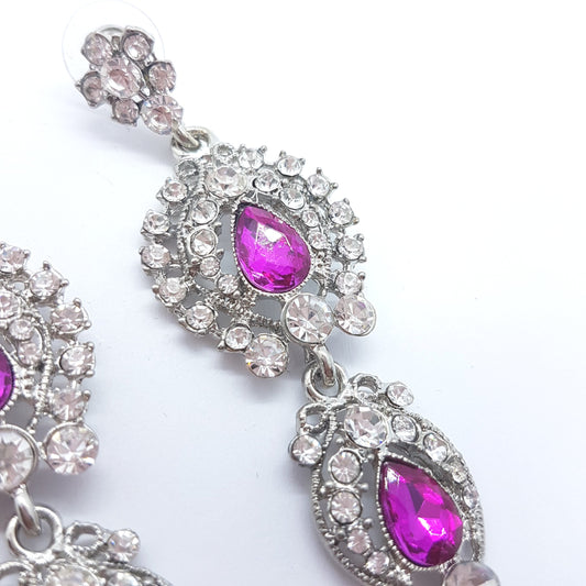Long Fuchsia Rhinestone Earrings
