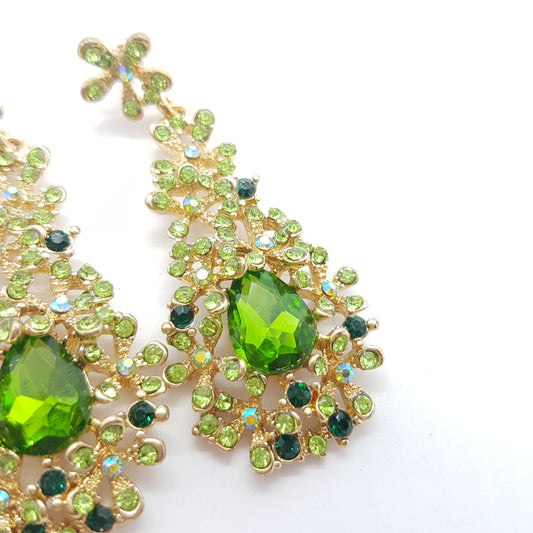 Green Floral Drop Rhinestone Earrings