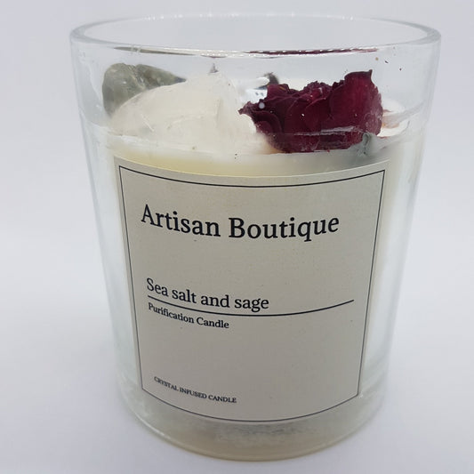 Handmade Sea Salt & Sage Crystal Infused Candle