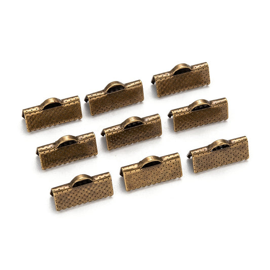 10pc 16mm Bronze Ribbon End Crimps