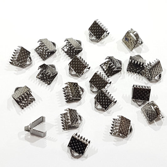 20pc Gunmetal Black Ribbon End Crimps
