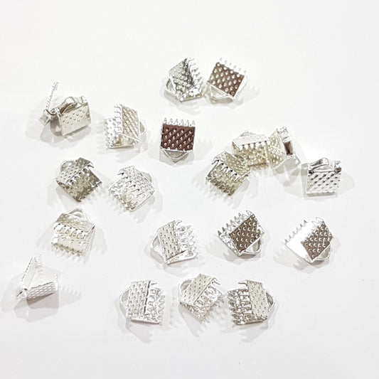 20pc Silver Ribbon End Crimps