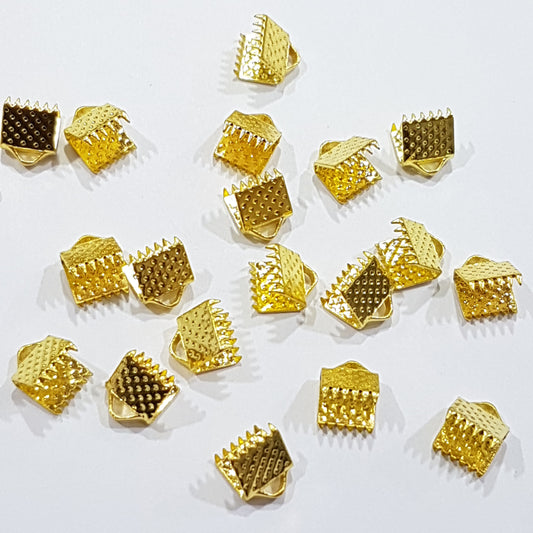 20pc Gold Ribbon End Crimps