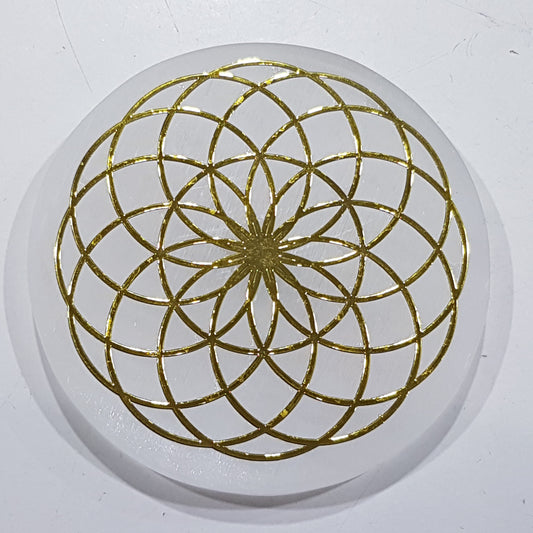 Small Selenite The Flower Of Life Gold Foil Charging Plate