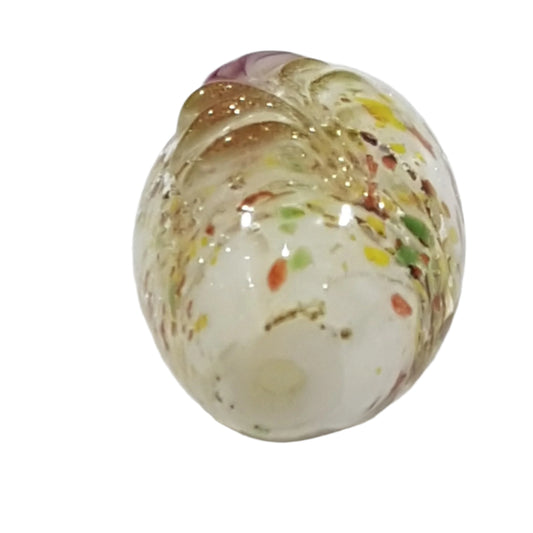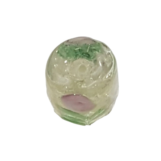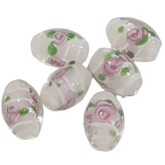 15mm Oval Pink & White Floral Lampwork Bead