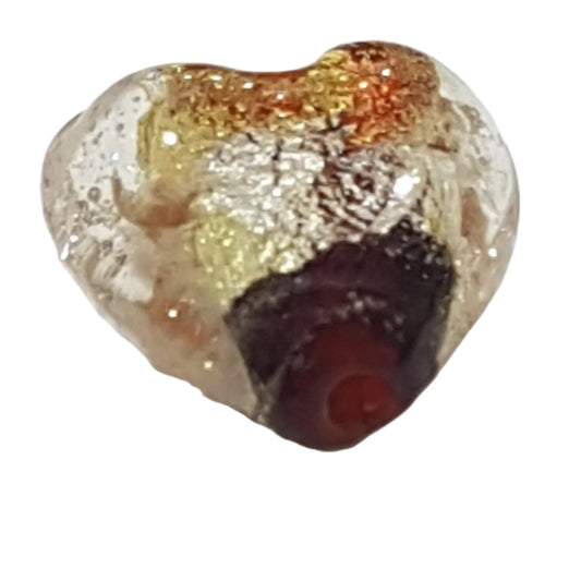 15mm Clear Heart With Gold, Silver & Red