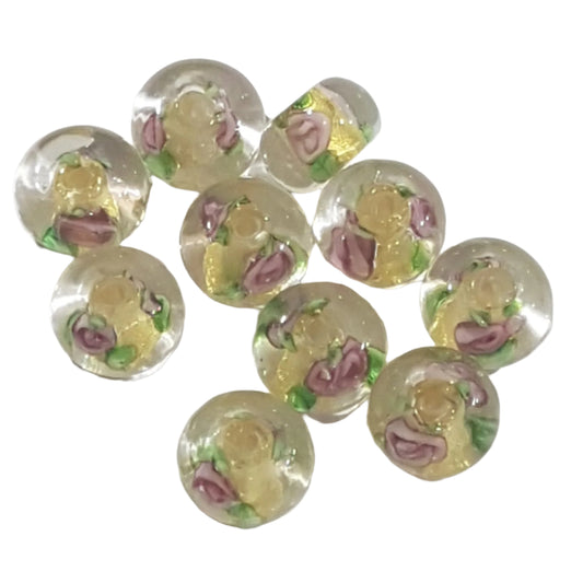 12mm Floral & Gold Lampwork Bead