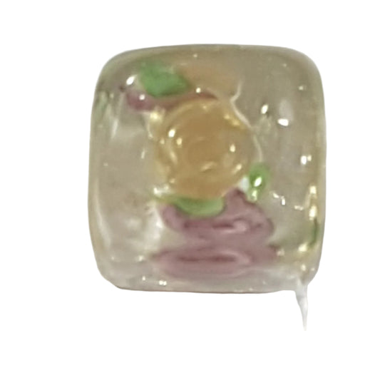 10mm Floral & Gold Lampwork Sq. Bead