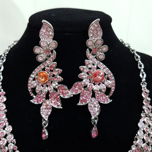 Sparkling Pink Necklace Earring Set