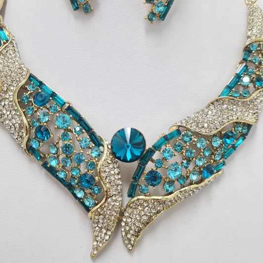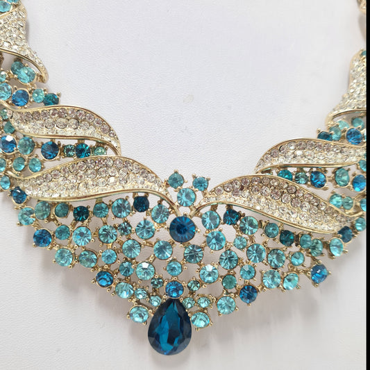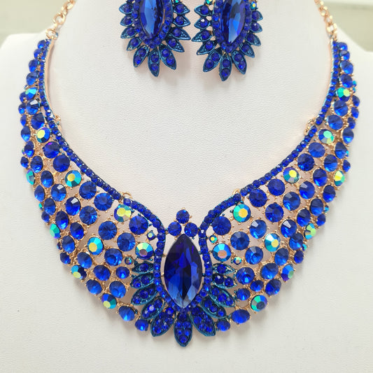 Blue Rhinestone Necklace Set