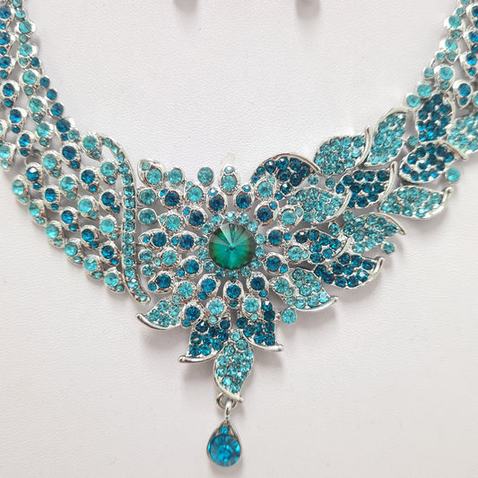Blue and Silver Rhinestone Necklace Set