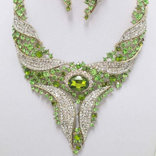 Green and Crystal Rhinestone Jewellery Set
