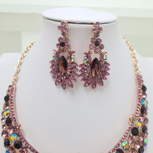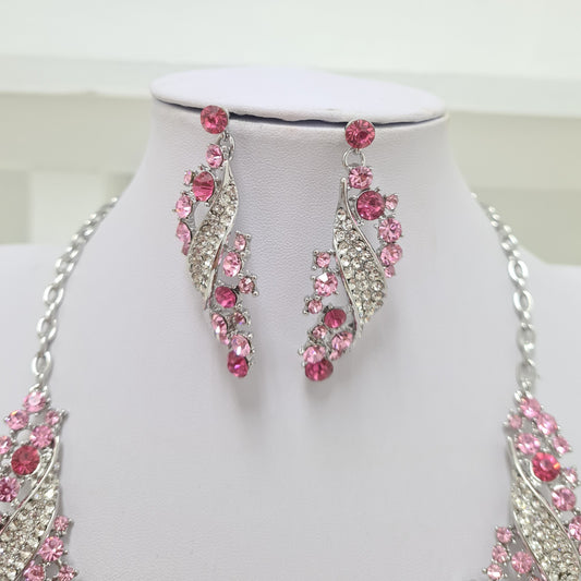 Pink Rhinestone Necklace Set