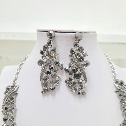 Sparkling Grey Necklace Earring Set