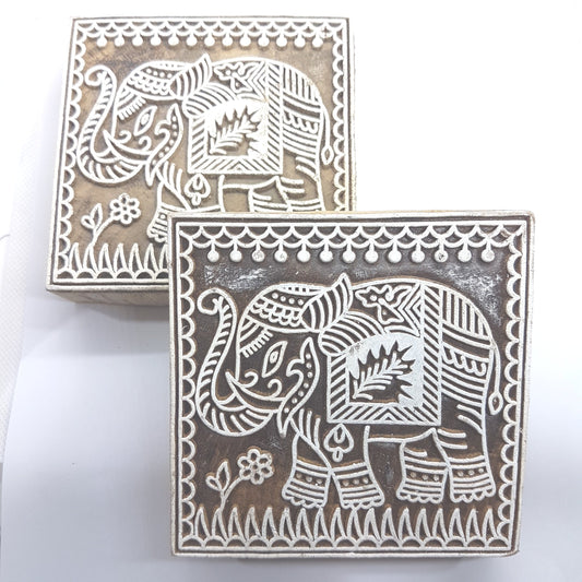 Elephant Indian Carved Block Stamp