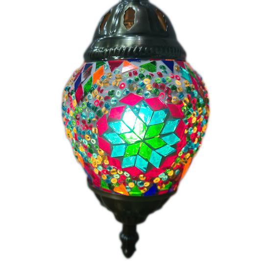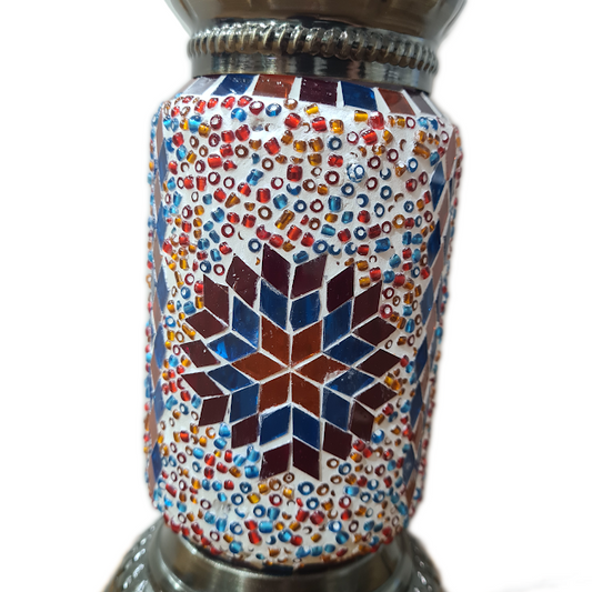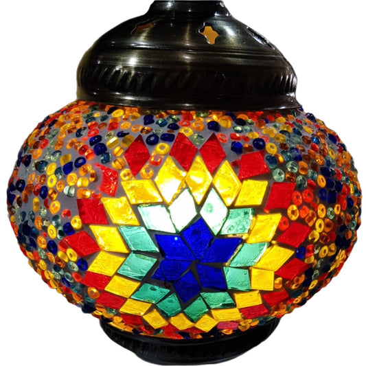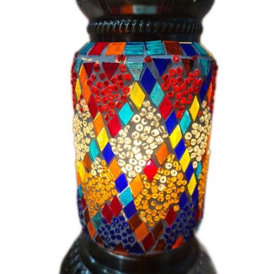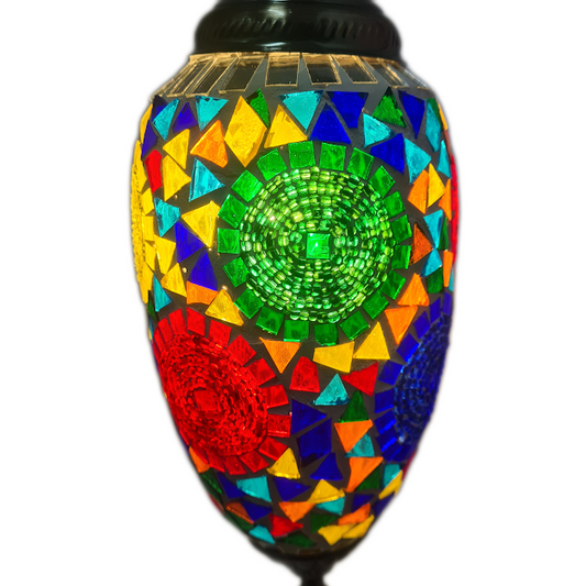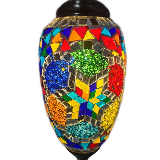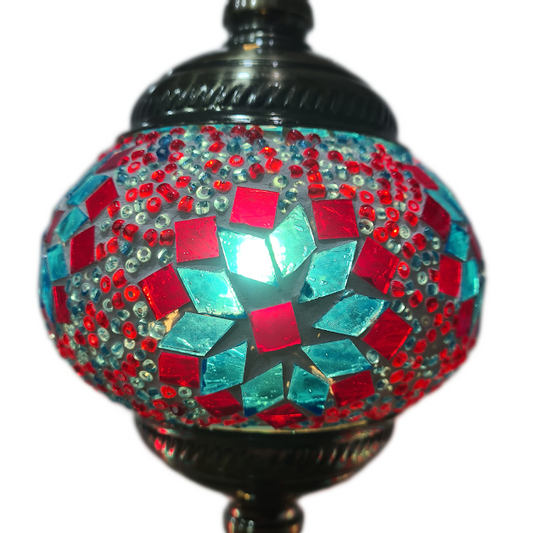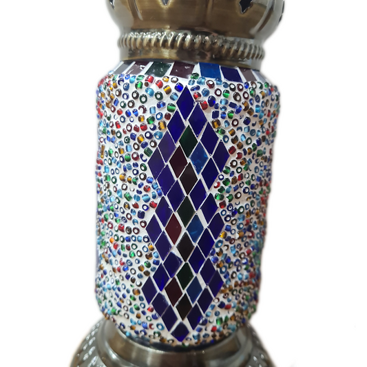 Mosaic lamps are handcrafted lighting fixtures characterized by their colorful glass mosaic patterns. They are renowned for their intricate designs, vibrant colors, and the enchanting glow they emit when illuminated, making them a unique and captivating addition to any space.