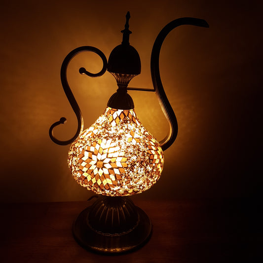 Mosaic lamps are handcrafted lighting fixtures characterized by their colorful glass mosaic patterns. They are renowned for their intricate designs, vibrant colors, and the enchanting glow they emit when illuminated, making them a unique and captivating addition to any space.