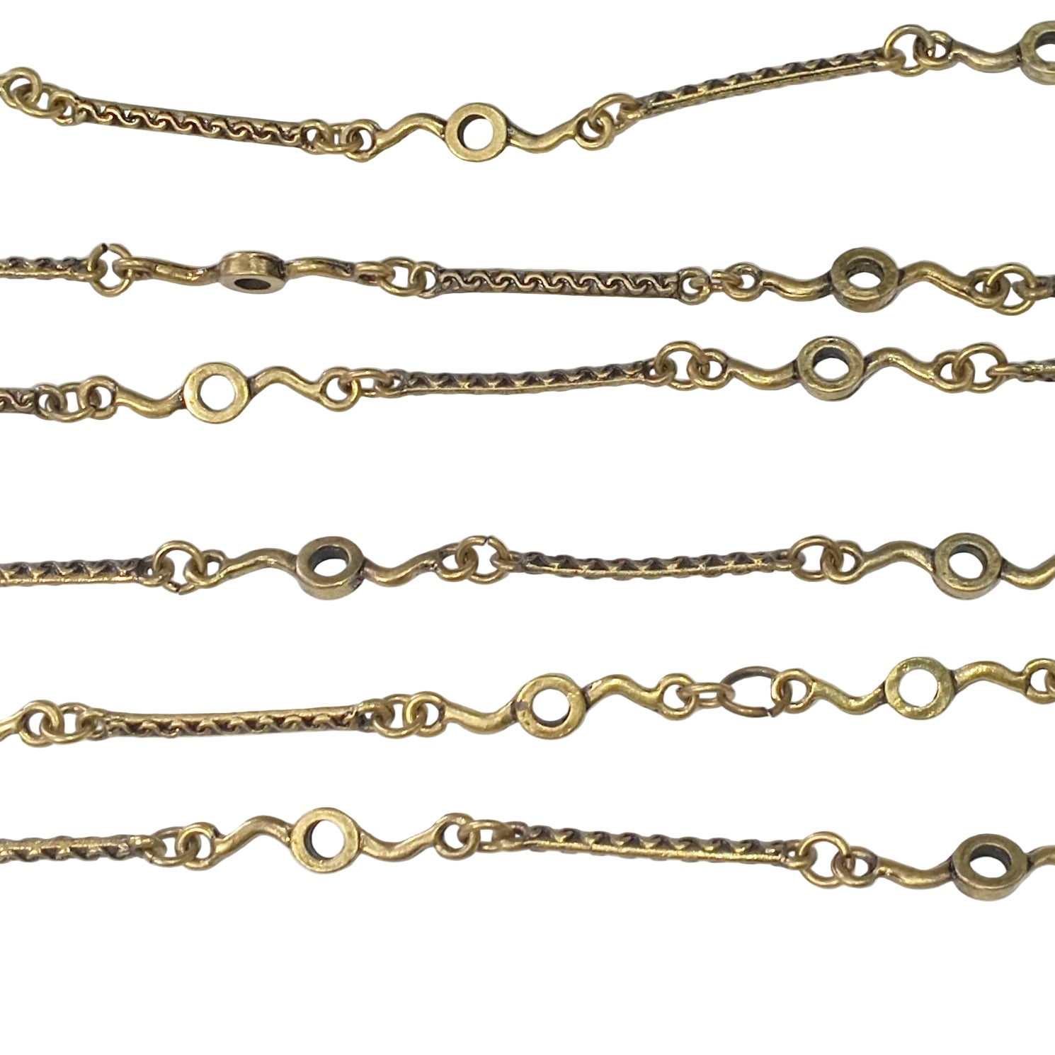Metal Alloy, bronze coloured fancy link chain with patterns.