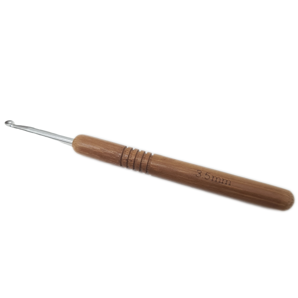 Made with an aluminum Hook & a tan coloured Bamboo Handle.