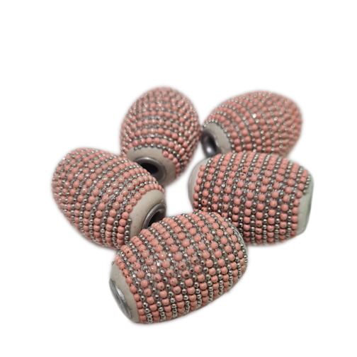 5pc Large Pink & Silver Beaded Kashmiri Beads