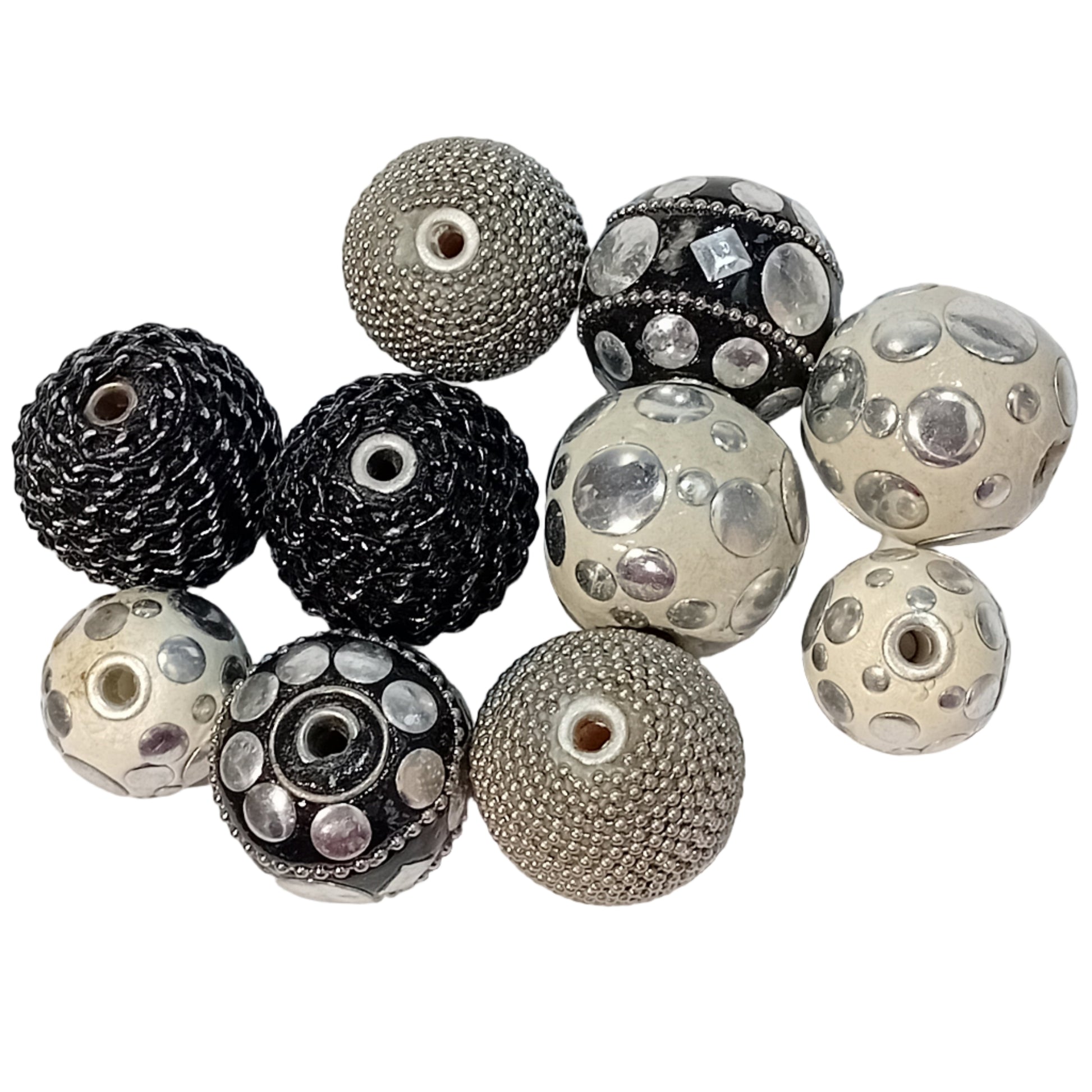 CLEARANCE! 10pc Black, White & Silver Kashmiri Beads