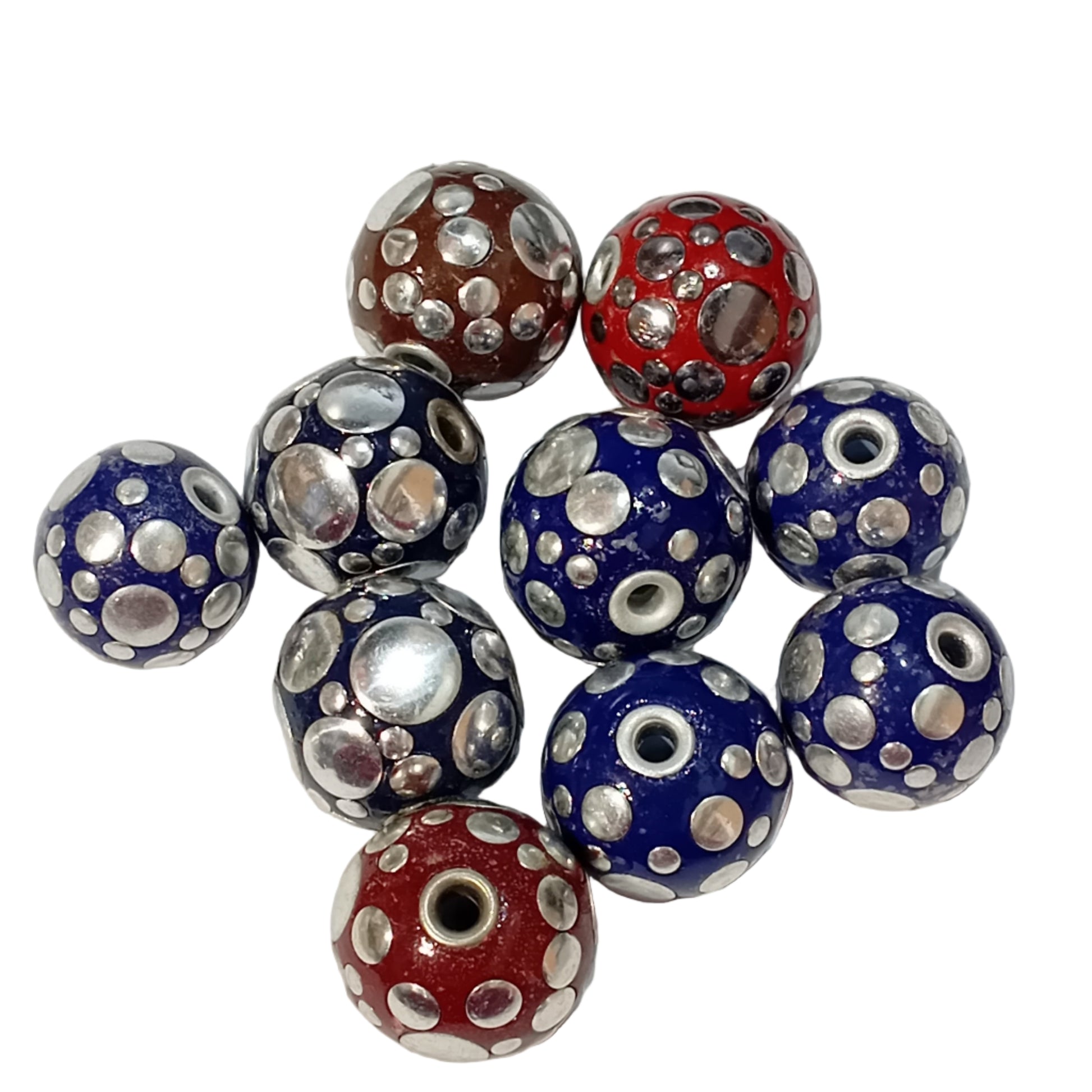 10 Kashmiri beads. Dark blue brown & a red kashmiri beads!