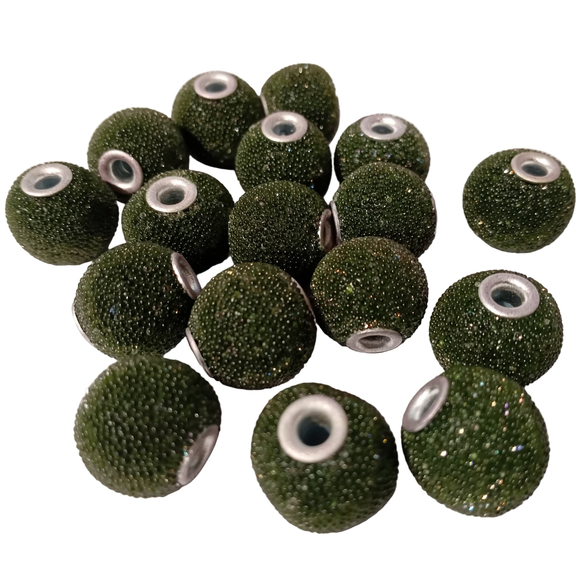 CLEARANCE! 18pc Dark Green Glittery Kashmiri Beads