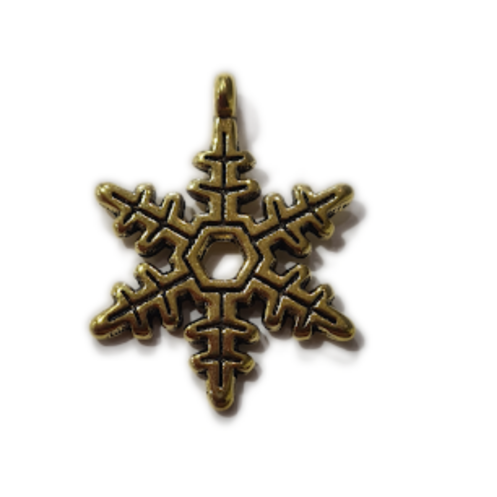 Gold  colour alloy snowflake charm. Nice solid charm. Detailed on both sides. Great for those Christmas projects!