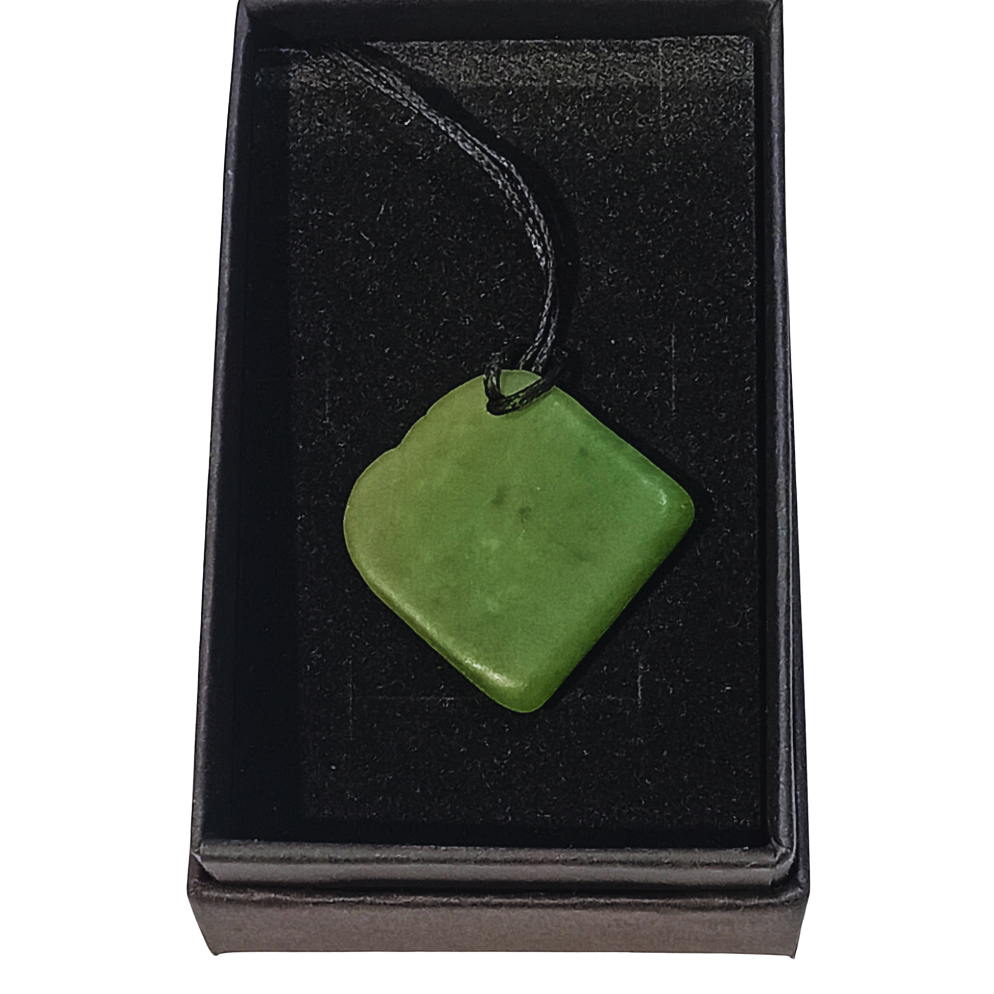 A beautiful  piece of New Zealand Green Stone attached to a black cotton cord.