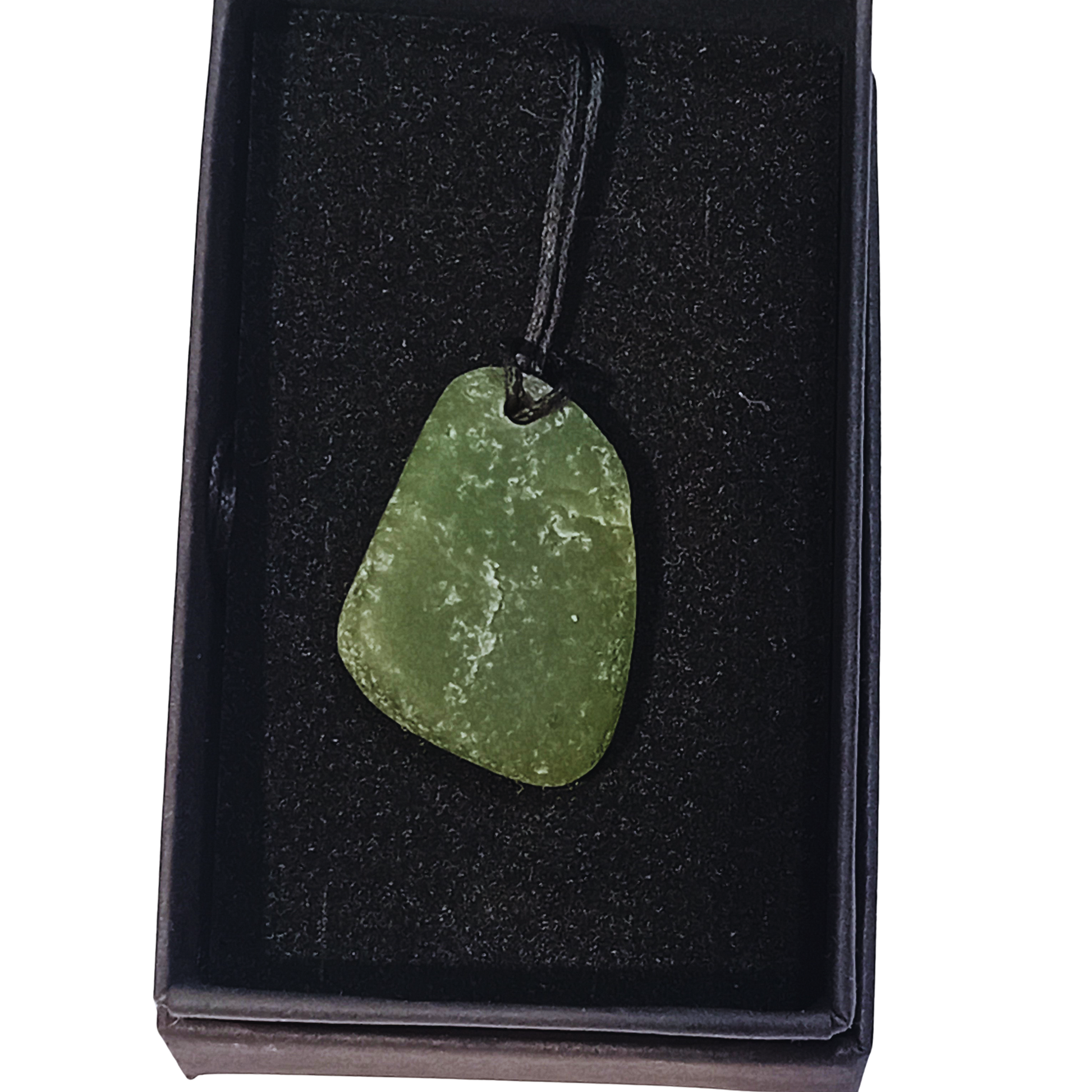 A beautiful  piece of New Zealand Green Stone attached to a black cotton cord.