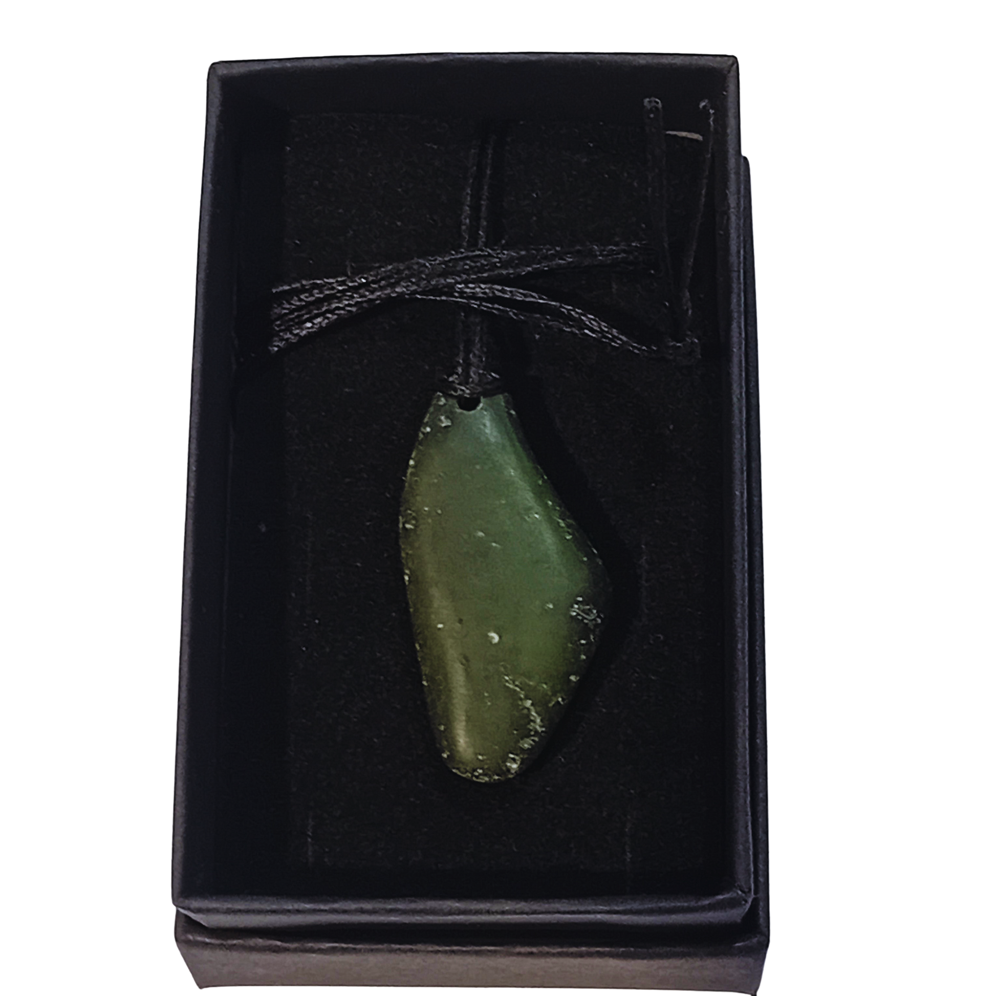 A beautiful  piece of New Zealand Green Stone attached to a black cotton cord.