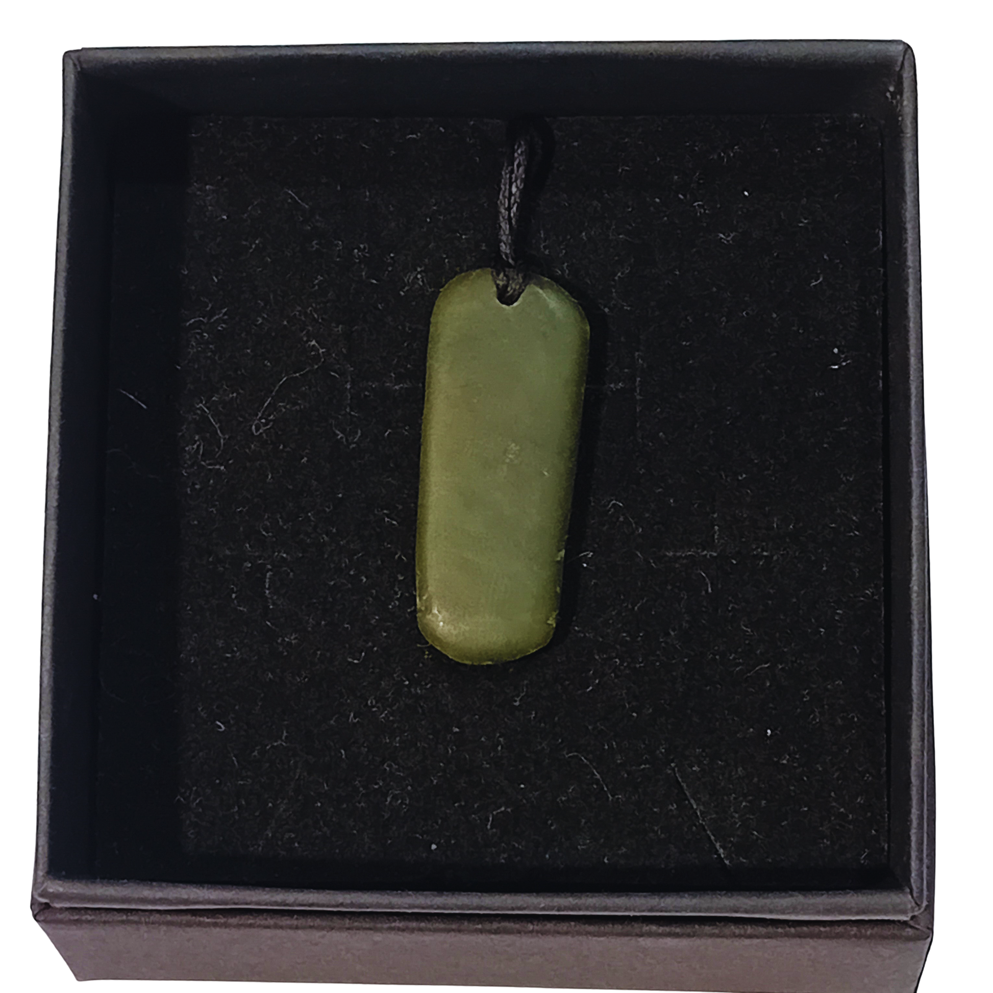 A beautiful  piece of New Zealand Green Stone attached to a black cotton cord.