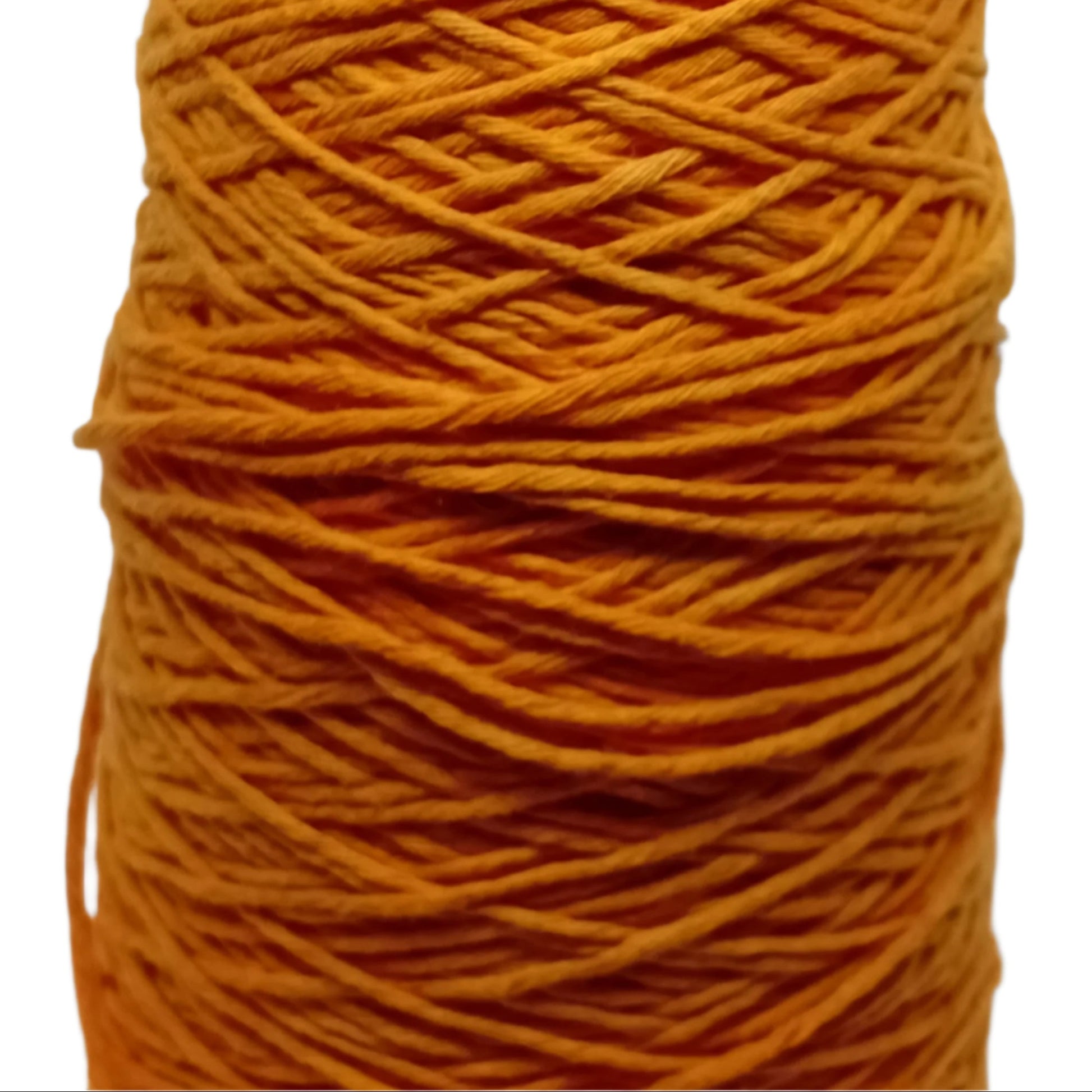 1mm orange yarn cone. Unsure of the exact material it is either a cotton blend or a wool blend. Please consider this before buying.